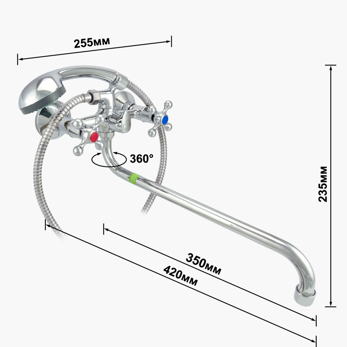 Комплектация: гибкий шланг 1,5 м, однорежимная лейка с функцией легкой очистки, держатель, эксцентрики, отражатели.