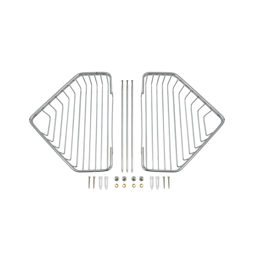 Показать оптовые ценыПолка решетчатая двойная угловая хромированная. Аксессуар для ванной комнаты, настенная, легко монтируется на стену и удобна в использовании.
